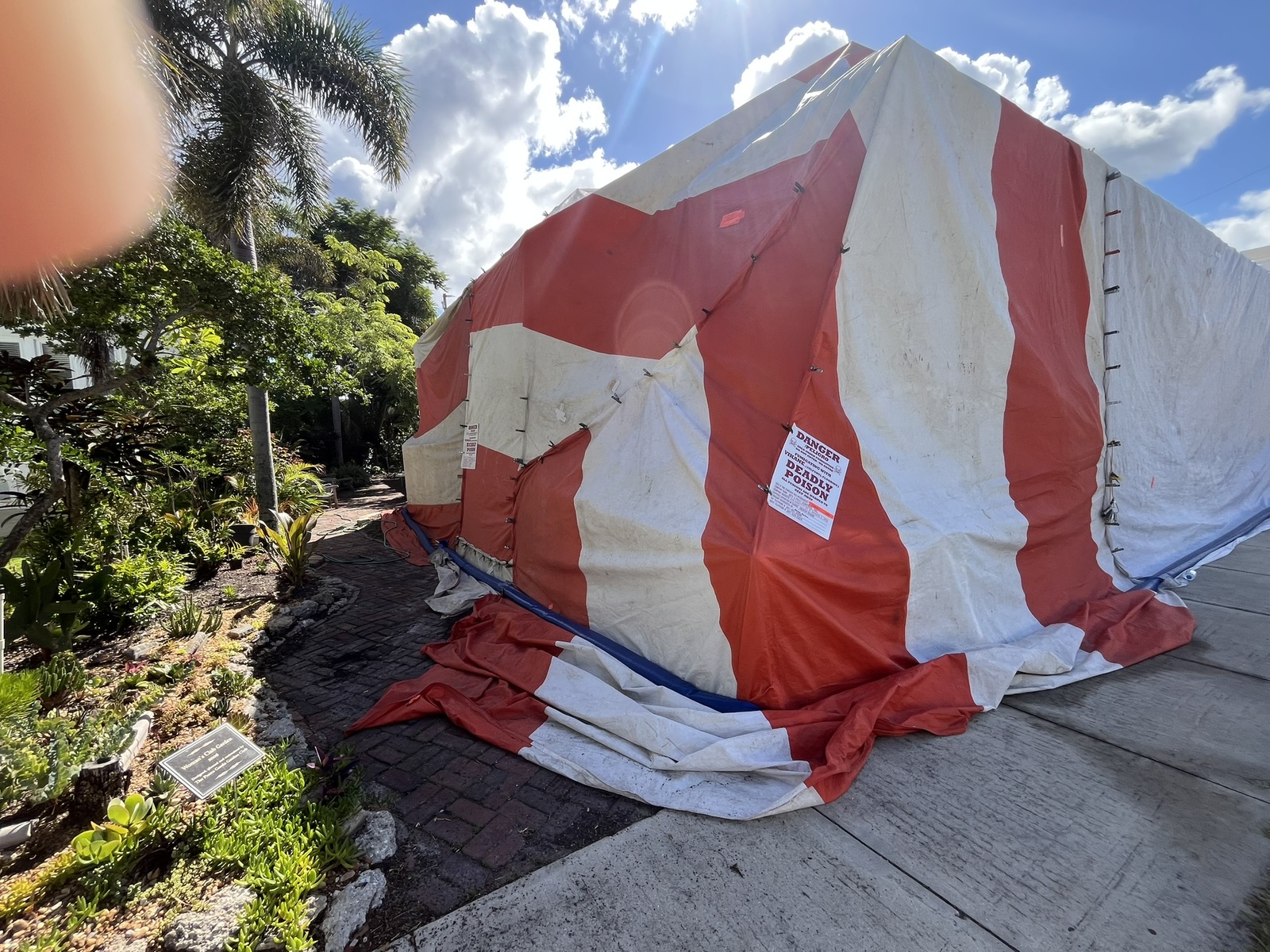 Despite weathering devastating blows from Hurricanes Ian, Helene, and Milton, the resilient Garden Club worked to nurture what survived and plant new specimens each time. However, the garden now faces a different enemy entirely—tenting and fumigation due to termites.