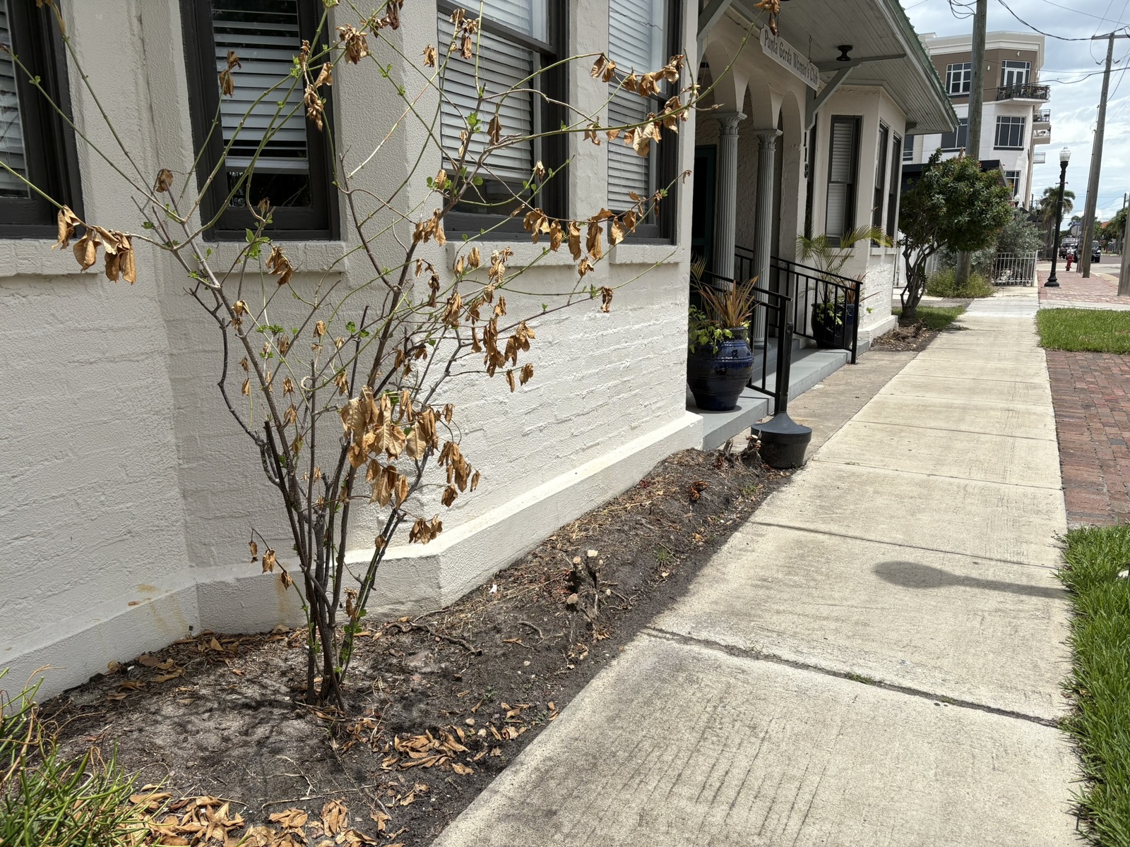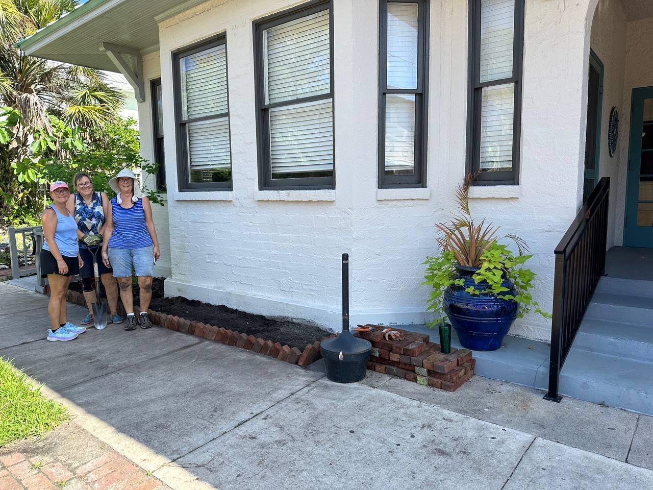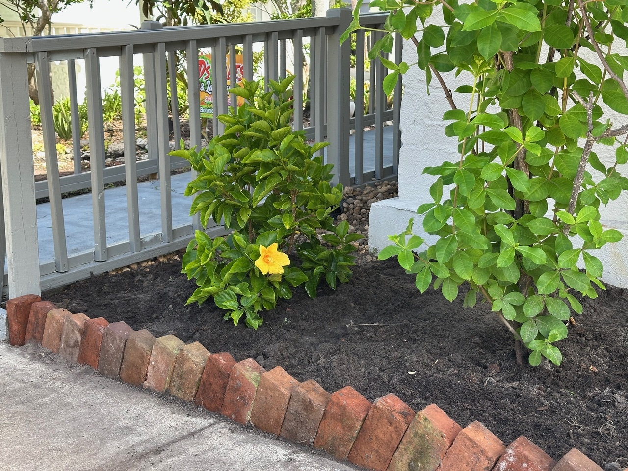Brick Border installed and new Hibiscus planted in front of the Woman’s Club. Â