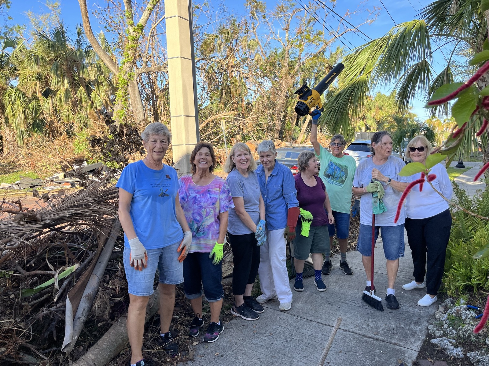 Mary Yeomans, president of the Punta Gorda Garden Club, highlighted the stark difference between this situation and previous hurricane recovery efforts.Â